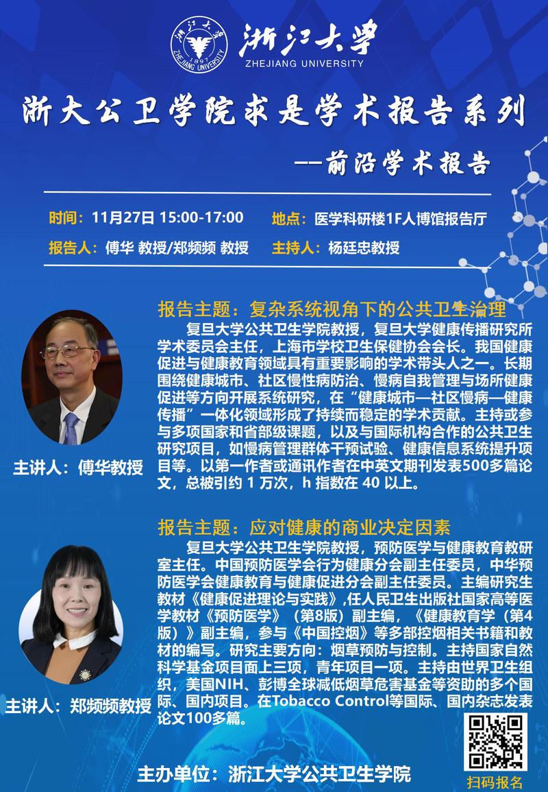 浙江大学公卫学院求是前沿学术报告——傅华教授 郑频频教授